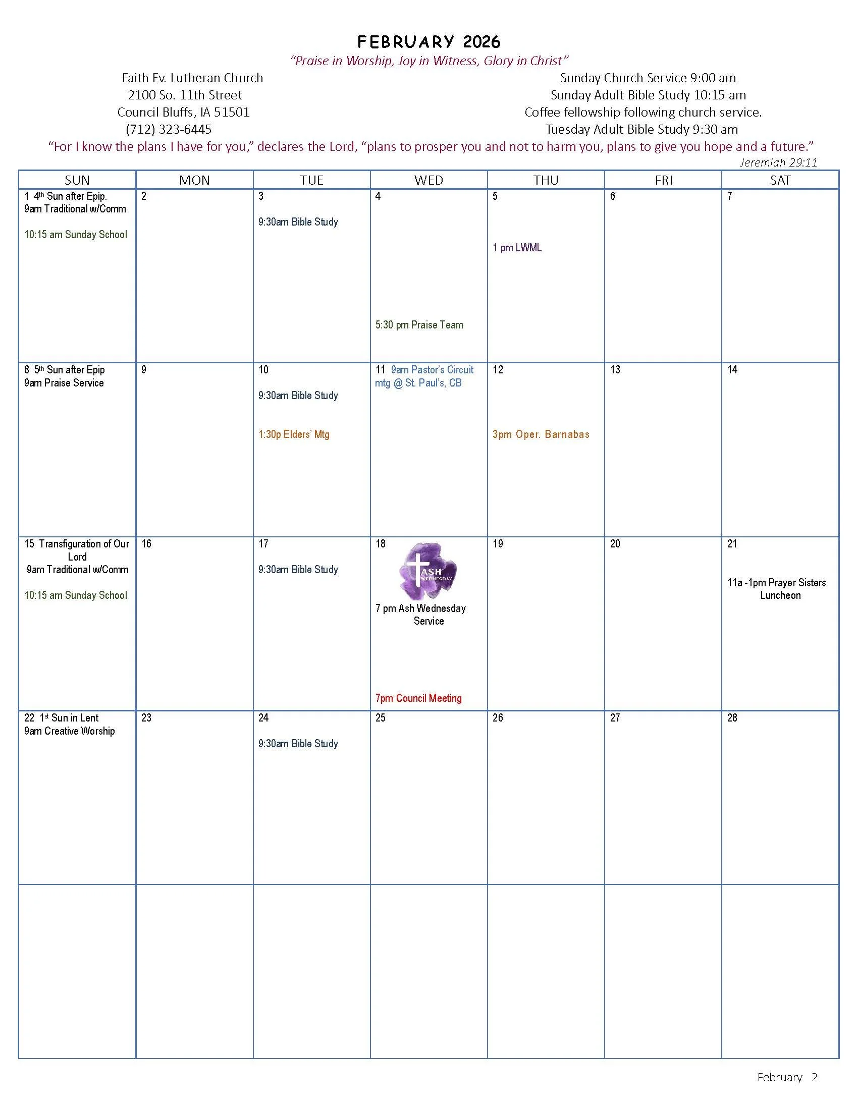 Council Bluffs Branch – Meets at Faith 2nd Thursday of each month at 7:00 p.m.